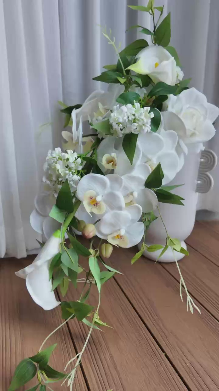 White Cascading Bridal Bouquet -Artificial Wedding Flowers